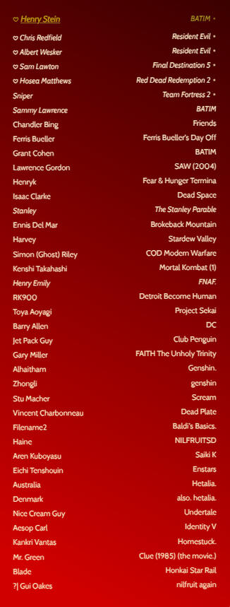 the gay list except this one is probably actually viewable on mobilethis one is not updated. you gotta be not on mobile to see the version that i actually update once every year.ALSO TO SEE THE PLAYLIST YOU HAVE TO GO TO THR PC VERSION OF THE LIST. SORRY GUYS. I DONT FEEL LIKE LINKING IT HERE